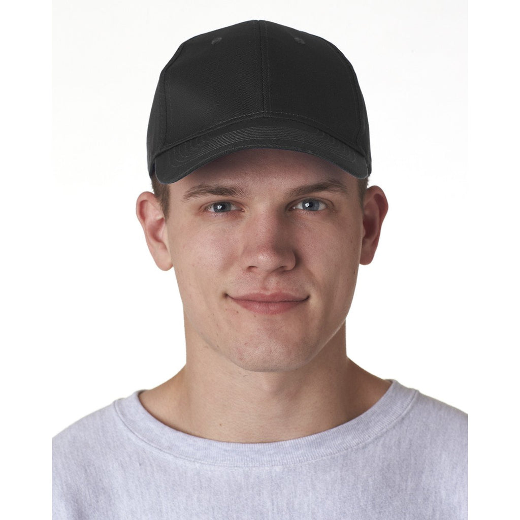UltraClub Men's Black Classic Cut Cotton Twill 6-Panel Cap