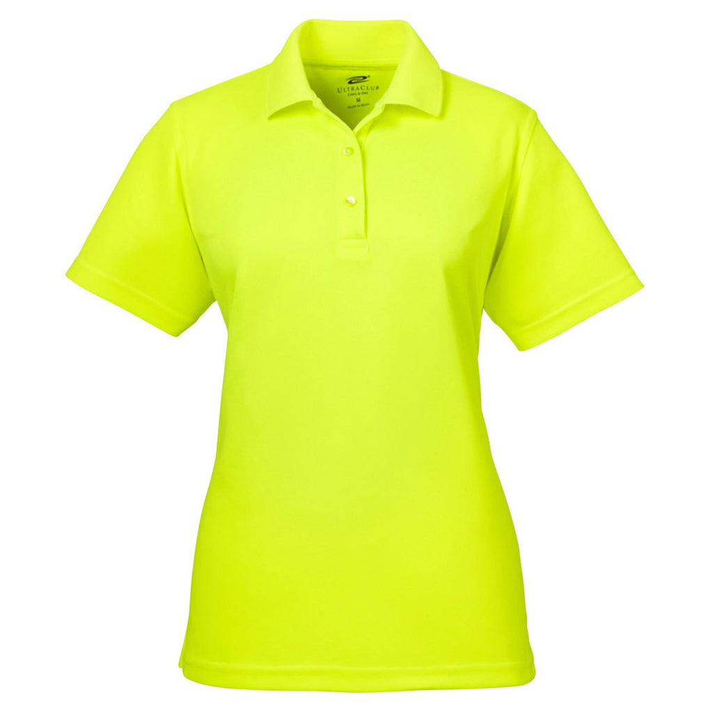 Enjoy wearing the UltraClub Women's Bright Yellow Cool & Dry Mesh Pique Polo everywhere you go. The visually appealing polo includes a fully taped flat-knit collar and three button placket with stylish dyed-to-match buttons. Moisture wicking technology quickly absorbs and removes perspiration to cool the skin. Rip and tear resistant polyester mesh pique ensures the polo lasts for years to come. Ultraviolet ray protection prevents damage to the skin, which allows you to work outdoors all day long. The feminine fit completes the design deal for the must own polo. Attach your company logo to get the word out about your brand at corporate events.Corresponding Men's Style: UltraClub Men's Bright Yellow Cool & Dry Mesh Pique Polo