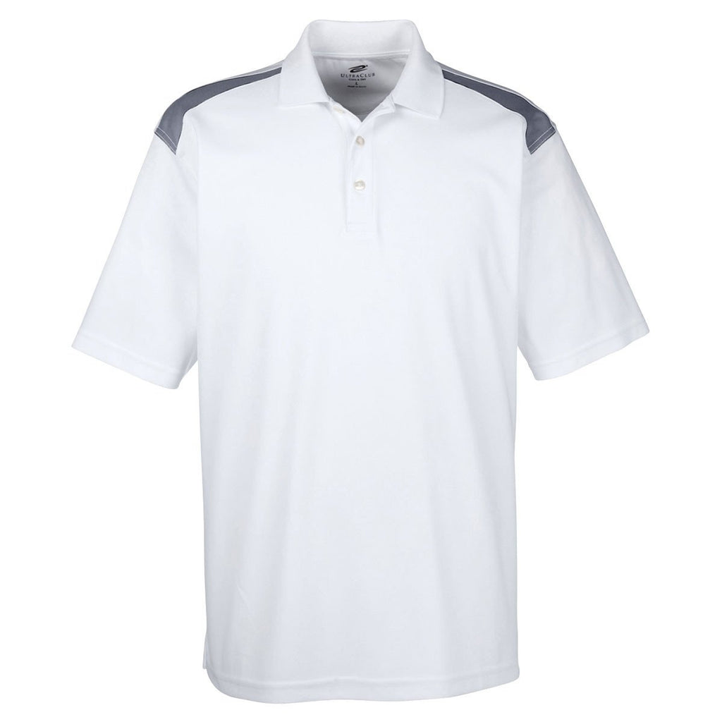 UltraClub Men's White/Charcoal Cool & Dry Two-Tone Mesh Pique Polo