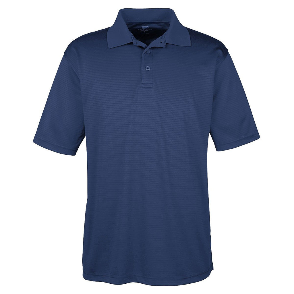 UltraClub Men's Navy Cool & Dry Jacquard Stripe Polo