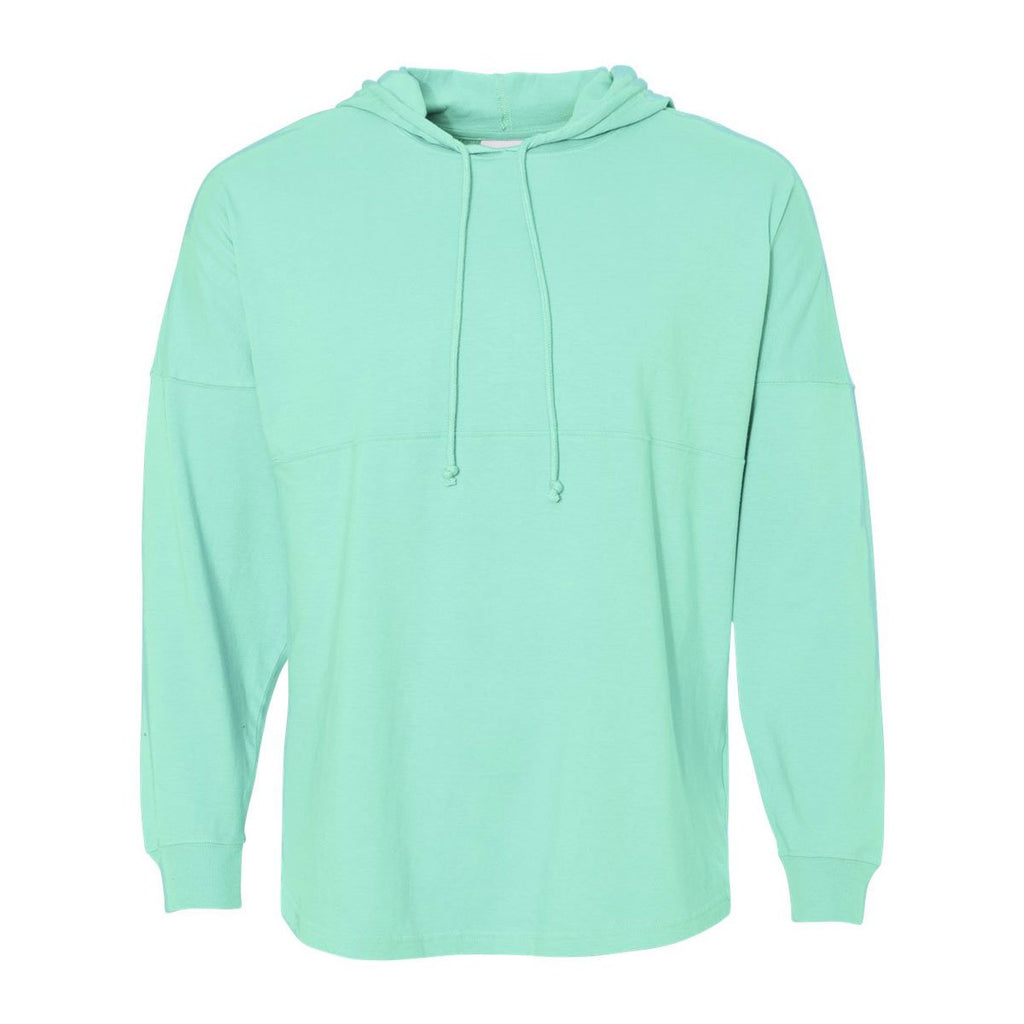 When the day of the big game arrives, wear the embroidered J. America Women's Mint Hooded Game Day Jersey T-Shirt. The 100% cotton t-shirt allows you to enjoy baseball games during summer as an only layer, while offering warmth as a first layer for creating a winter weather fashion ensemble. Soft cotton hugs the skin, without causing skin irritation. The matching draw cord allows you to find the most comfortable fit that keeps you going all day long. Enjoy the contouring Jersey lined hood, which protects your head against wet weather. Attach your company logo on the large imprint area and watch awareness of your brand climb to new heights.Highlights