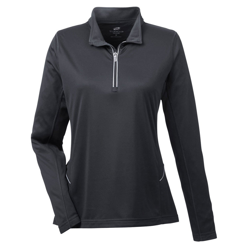 UltraClub Women's Black Cool & Dry Sport Quarter-Zip Pullover
