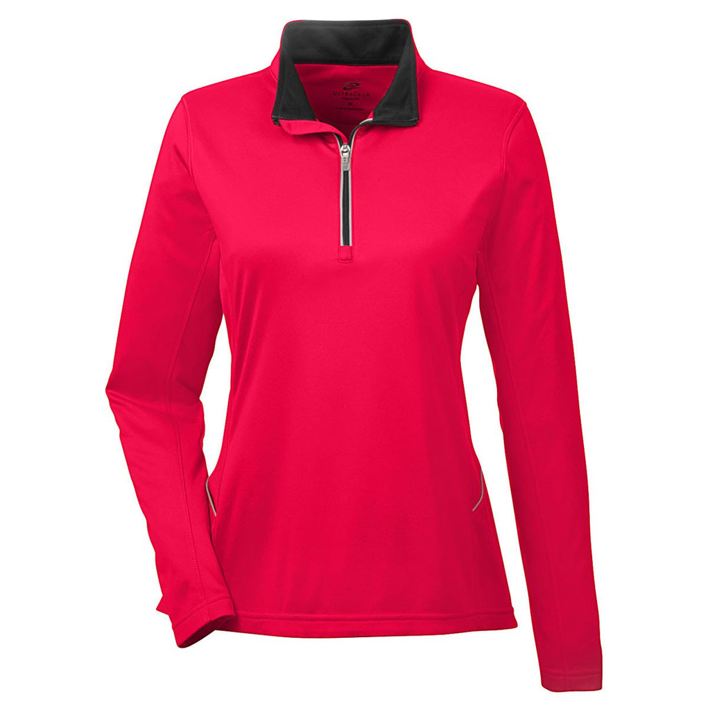 UltraClub Women's Red Cool & Dry Sport Quarter-Zip Pullover