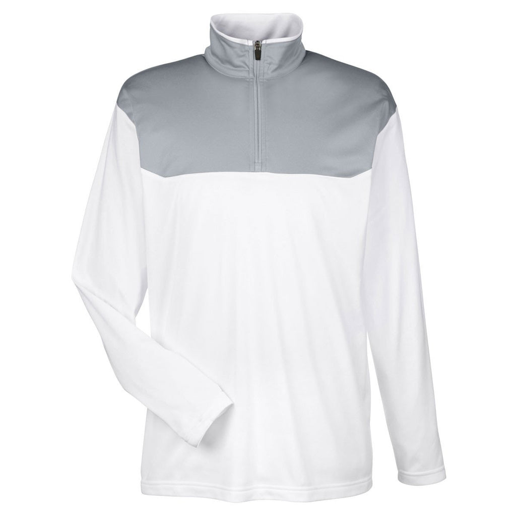 UltraClub Men's White/Silver Cool & Dry Sport Colorblock Quarter-Zip Pullover