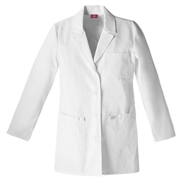 Dickies Women's White Lab Coat is jazzed up with a contemporary flair for you to instantly perk up your work silhouette. Back belt and darts lend a feminine shape to this breathable cotton-polyester blend coat. Designed with a notched collar, two chest pockets, two patch pockets and an extra cell phone pocket. Customize this lab coat to make it uniquely yours with an embroidered logo or a name in unique font for healthcare staff in your medical organization.