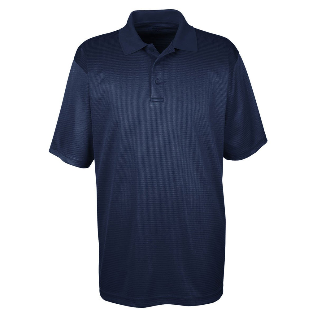 UltraClub Men's Navy Cool & Dry Elite Mini-Check Jacquard Polo