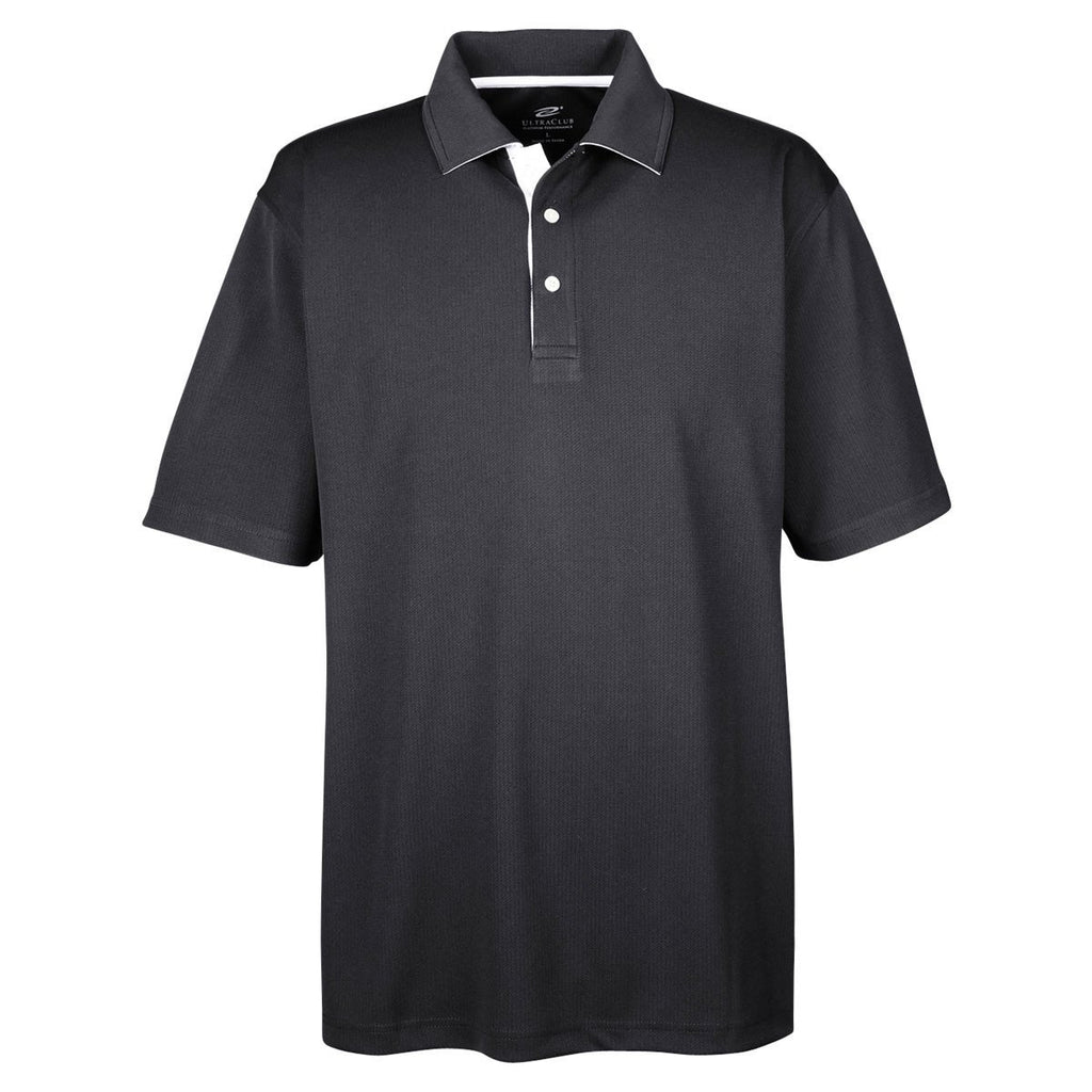 UltraClub Men's Black/White Platinum Performance Birdseye Polo with TempControl Technology
