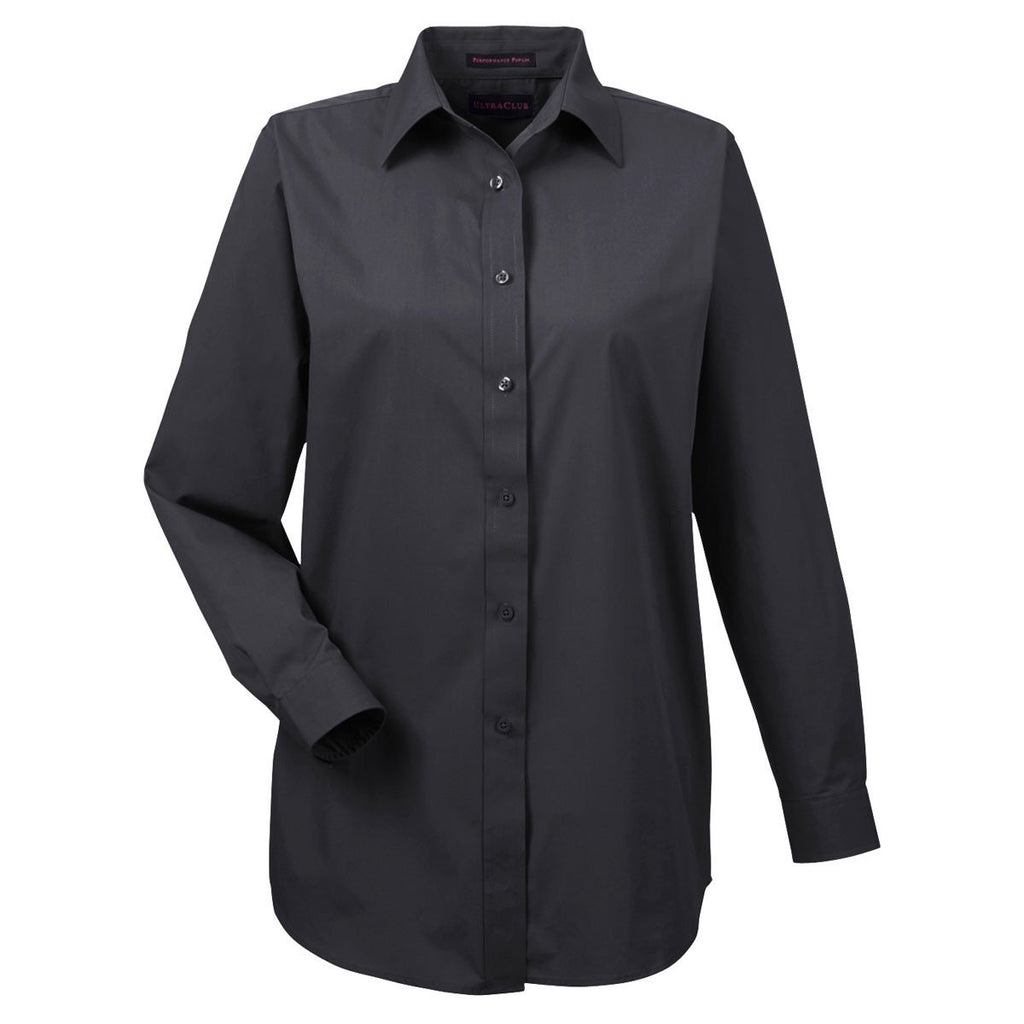 UltraClub Women's Black Performance Poplin