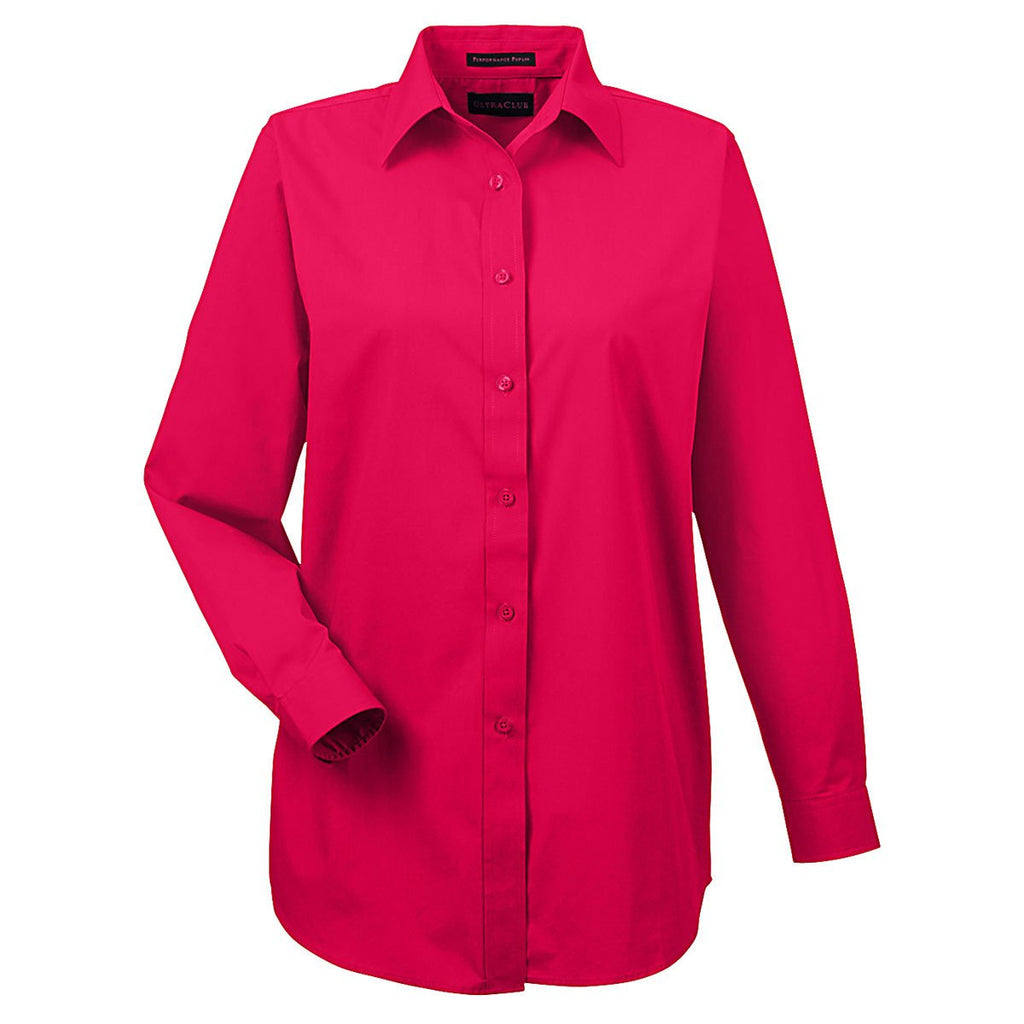 UltraClub Women's Red Performance Poplin