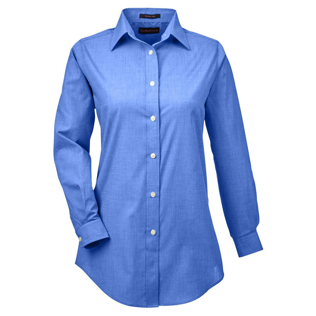 The time has come to reward your team of dedicated employees. You have to give the UltraClub Women's French Blue Wrinkle-Resistant End-on-End shirt to make a positive impression. Forty percent polyester forms the backbone of a versatile shirt that never succumbs to the rigors of frequent use. Add your company logo to create a walking billboard that promotes your brand everywhere your employees go. The wrinkle resistant shirt keeps you looking fresh throughout a day long business seminar. Stylish cuffs and placket send a bold fashion statement that your employees work for a company that values nothing but the best quality products and services.Corresponding Men's Style: UltraClub Men's French Blue Wrinkle-Resistant End-on-End