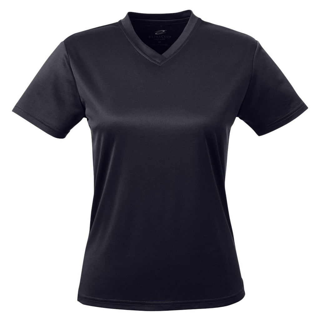 UltraClub Women's Black Cool & Dry Sport V-Neck T-Shirt