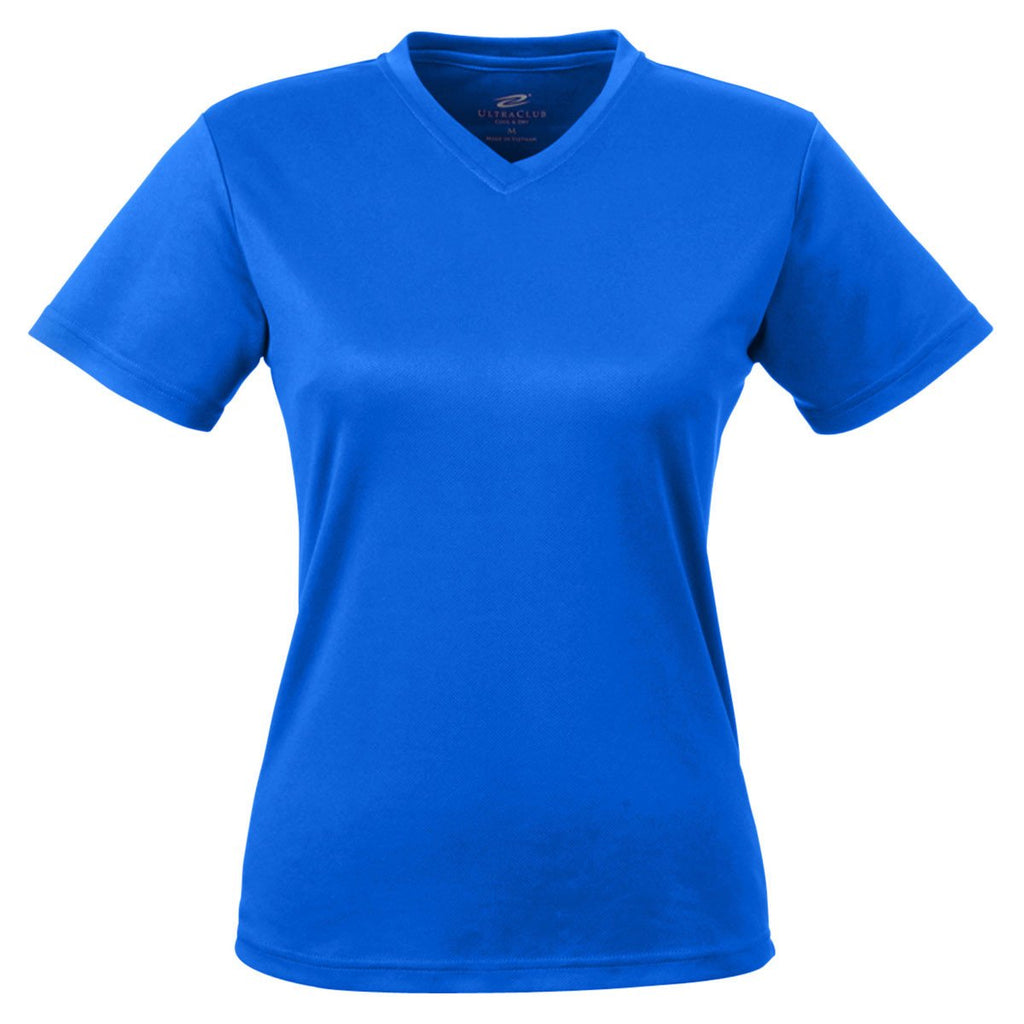 UltraClub Women's Royal Cool & Dry Sport V-Neck T-Shirt