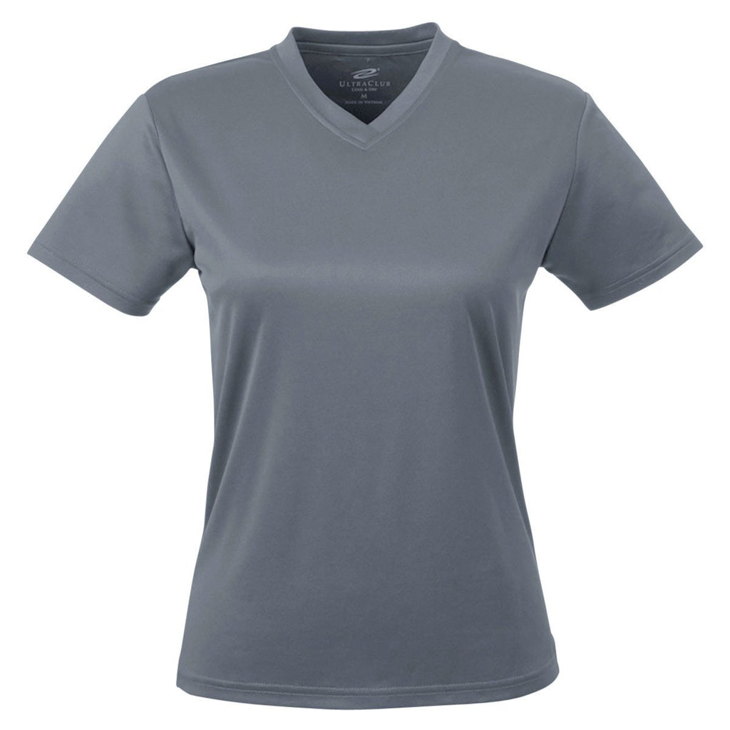 UltraClub Women's Charcoal Cool & Dry Sport V-Neck T-Shirt