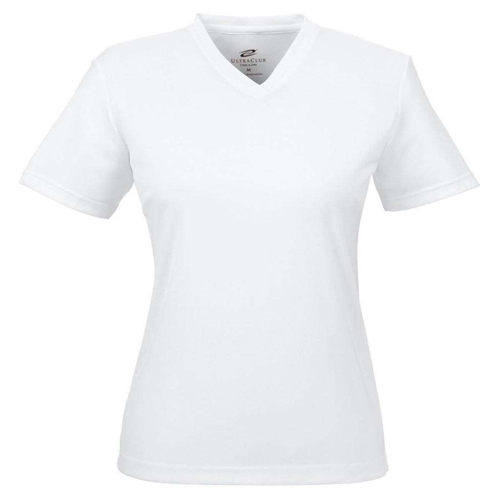 UltraClub Women's White Cool & Dry Sport V-Neck T-Shirt