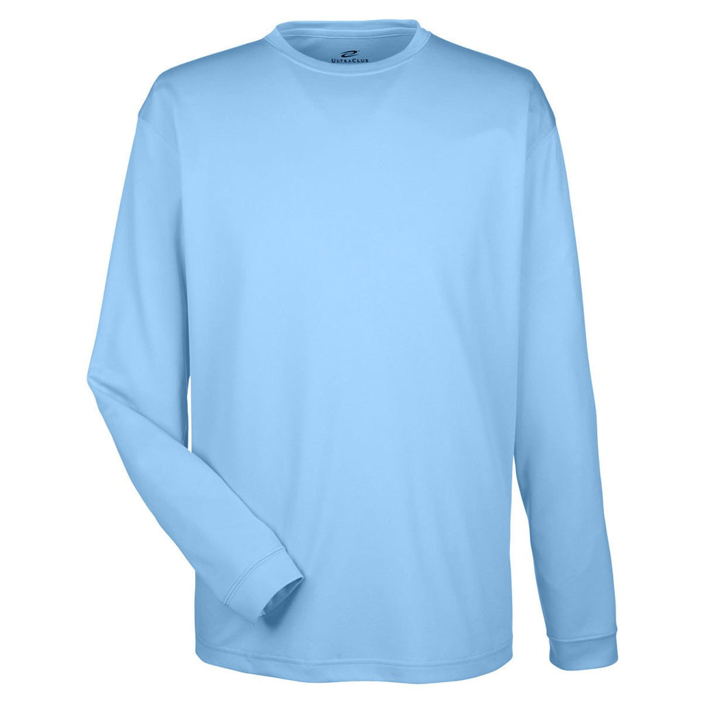 UltraClub Men's Columbia Blue Cool & Dry Sport Long-Sleeve T-Shirt