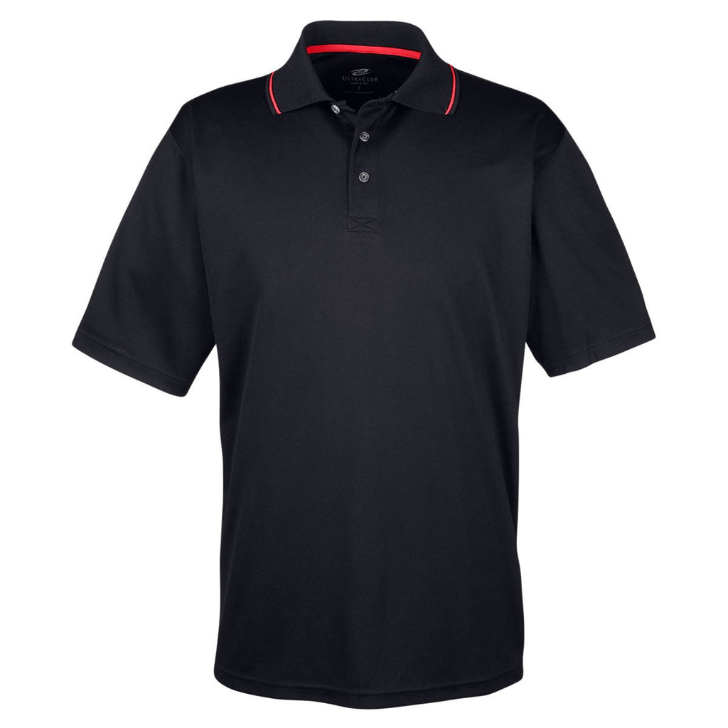 UltraClub Men's Black/Red Cool & Dry Sport Two-Tone Polo