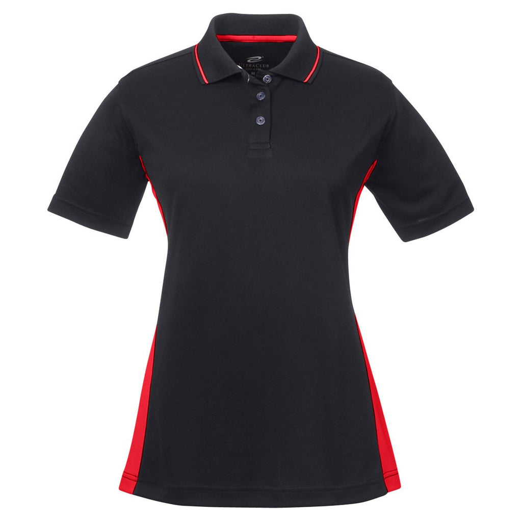 UltraClub Women's Black/Red Cool & Dry Sport Two-Tone Polo