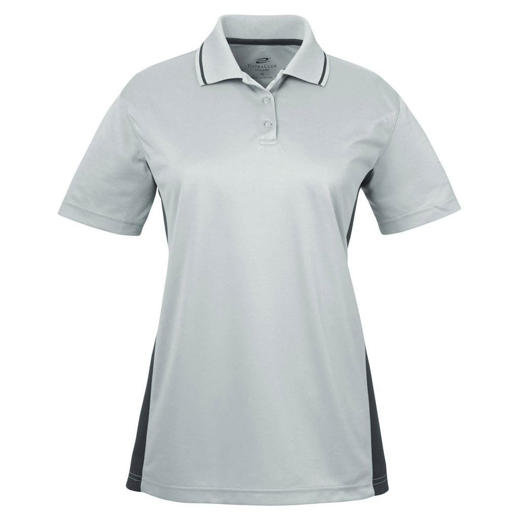UltraClub Women's Grey/Black Cool & Dry Sport Two-Tone Polo