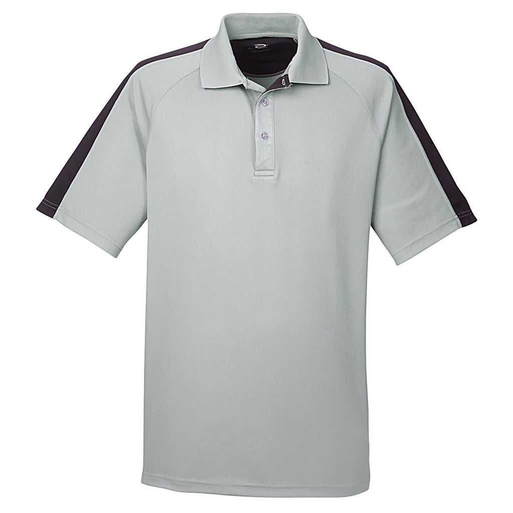 UltraClub Men's Grey/Black Cool & Dry Sport Shoulder Block Polo
