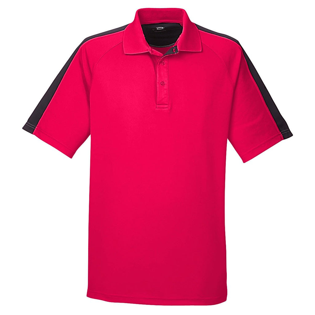 UltraClub Men's Red/Black Cool & Dry Sport Shoulder Block Polo