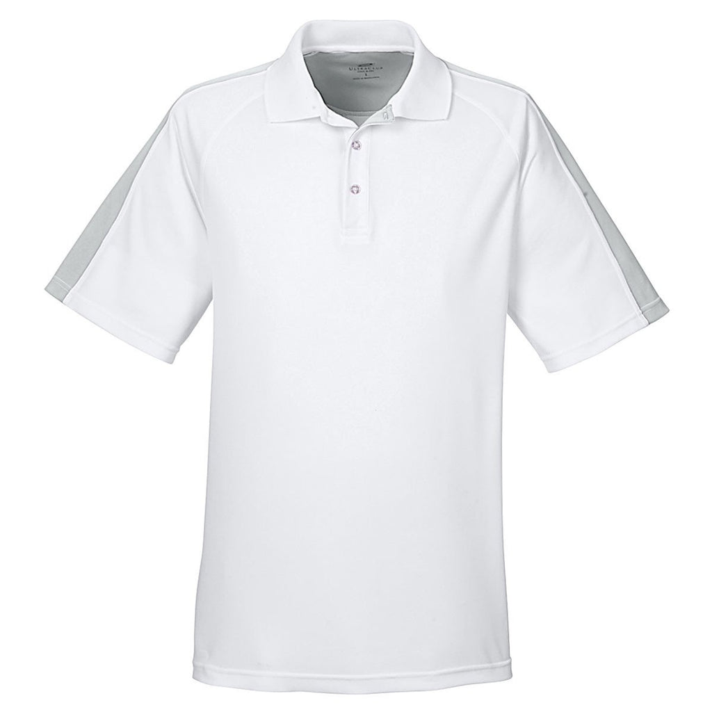 UltraClub Men's White/Grey Cool & Dry Sport Shoulder Block Polo