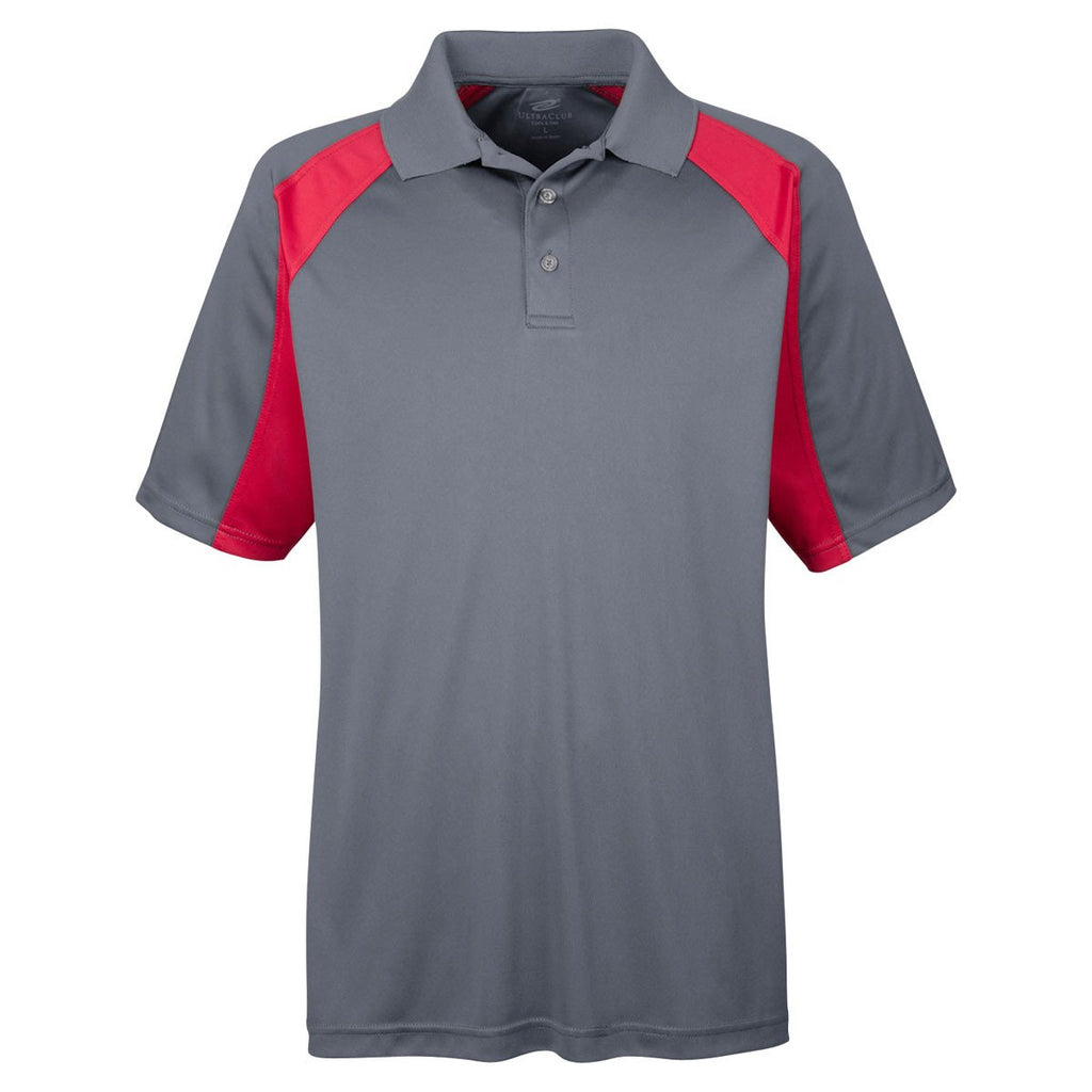 UltraClub Men's Charcoal/Red Cool & Dry Sport Performance Colorblock Interlock Polo