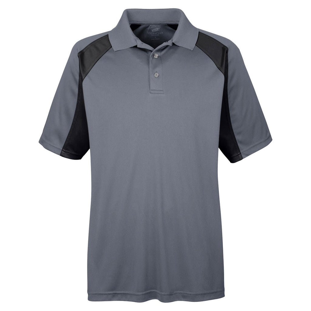 UltraClub Men's Charcoal/Black Cool & Dry Sport Performance Colorblock Interlock Polo