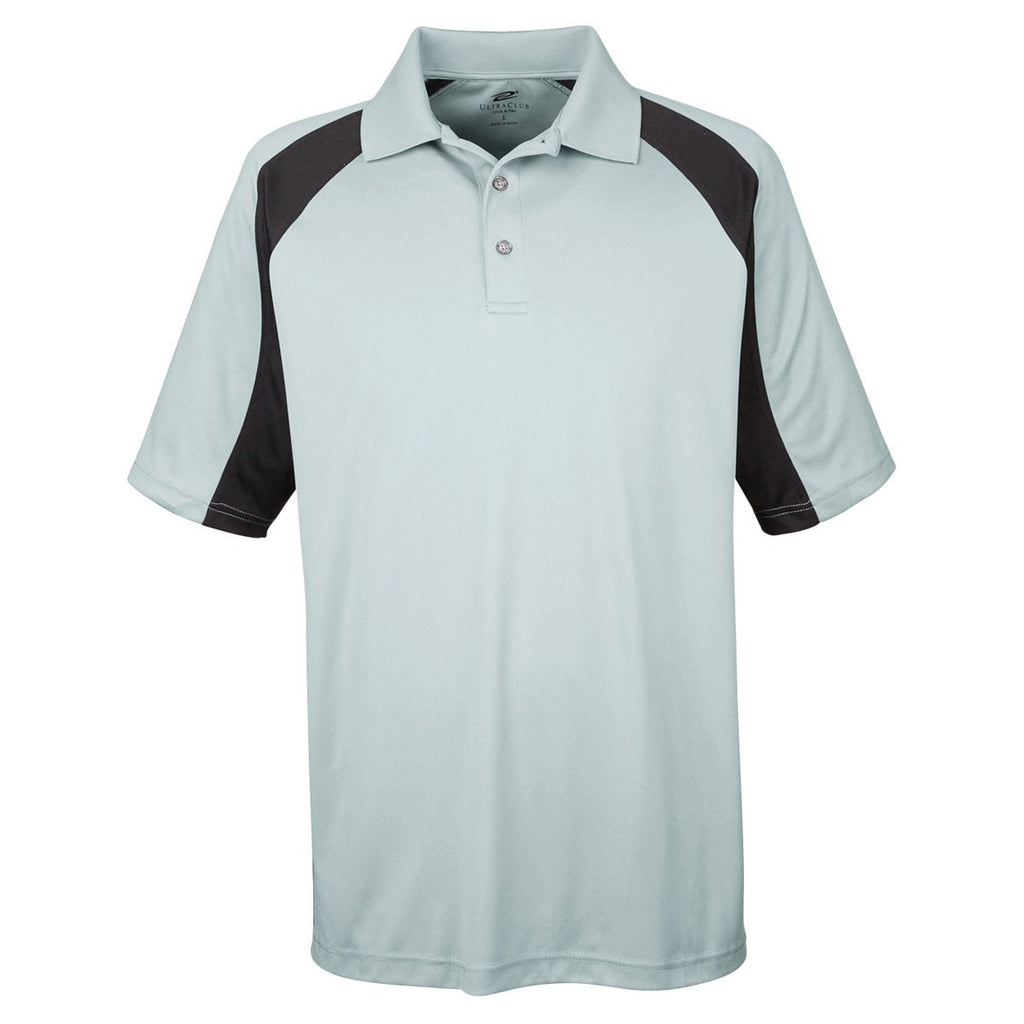 UltraClub Men's Grey/Black Cool & Dry Sport Performance Colorblock Interlock Polo