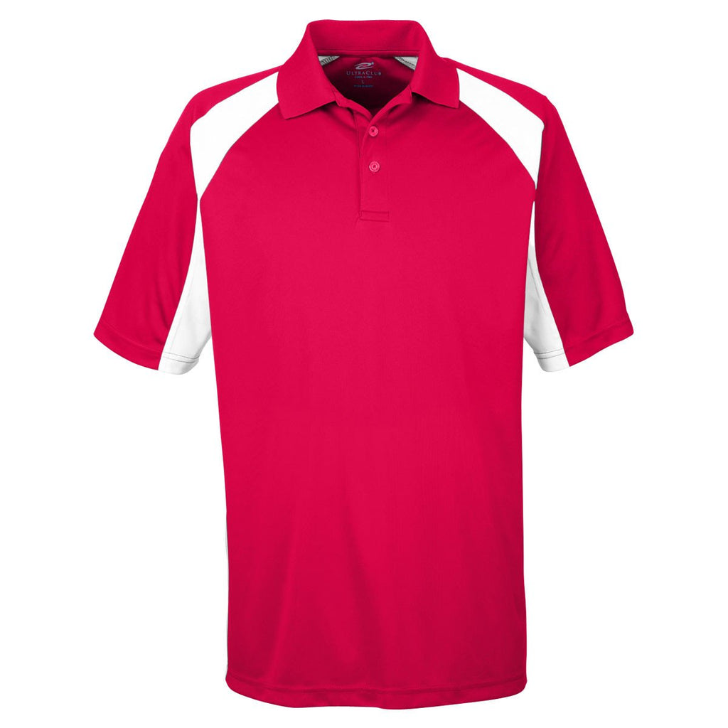 UltraClub Men's Red/White Cool & Dry Sport Performance Colorblock Interlock Polo