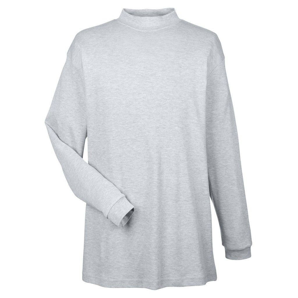 UltraClub Men's Heather Grey Egyptian Interlock Long-Sleeve Mock Turtleneck