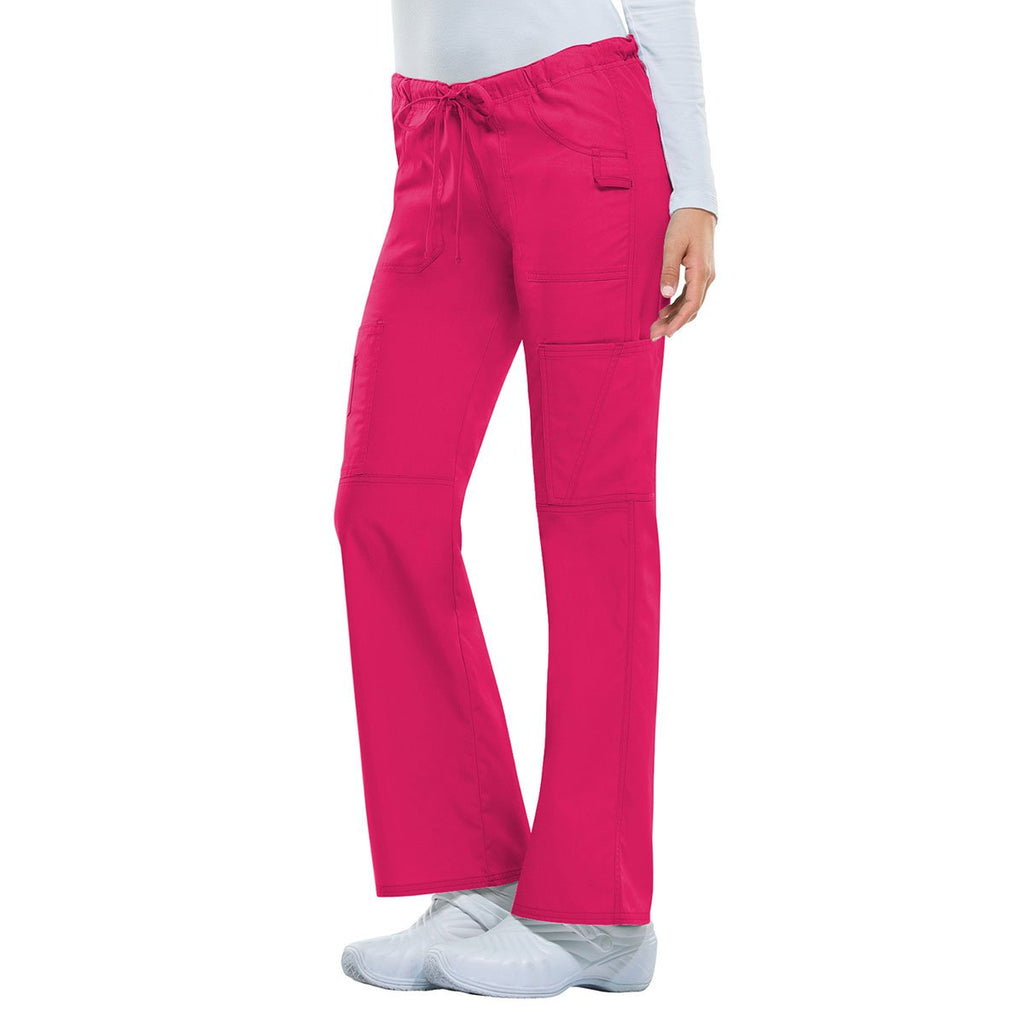Impress your professional colleagues by wearing the custom logoed Dickies Women's Hot Pink EDS Signature Low-Rise Drawstring Cargo Pant. The low-rise straight leg pant comes with an adjustable draw string and elastic waistband to ensure the ultimate in comfort. Soft brushed cotton never clings to the skin or chafes the leg when you have to stay on your feet for hours on end. Rugged polyester poplin endures strenuous work environments to deliver years of high performance. A scissors pocket and multiple pencil slots keep your important work instruments close by. Add a custom logo on the large imprint area to promote your business to potential patients.Highlights