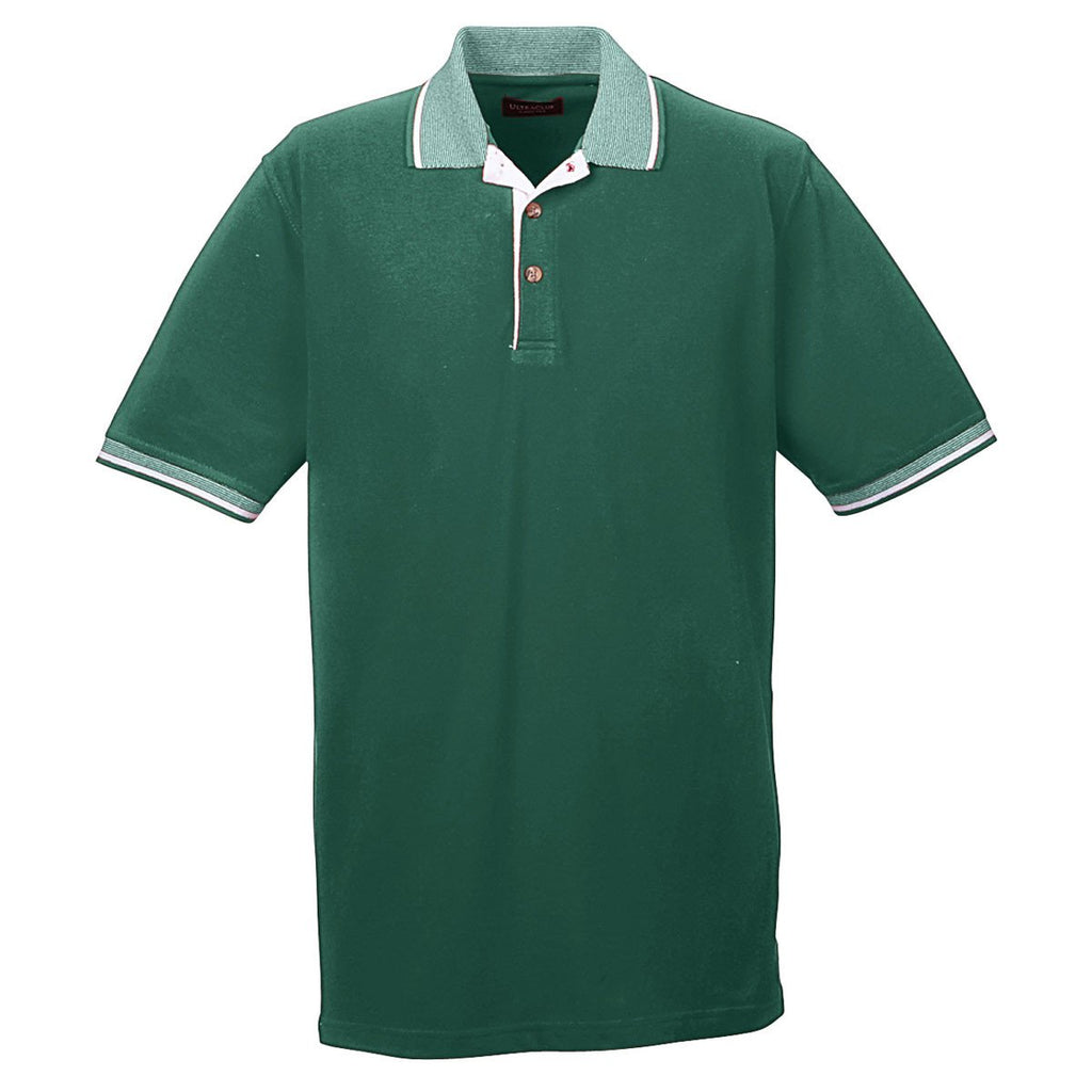 Your team of service professional needs to look sharp in the field. Order the UltraClub Men's Forest Green/White Color-Body Classic Pique Polo with Contrast Multi-Stripe Trim to deliver fashion greatness during every service call. Add your corporate logo to the large imprint area to reach customer prospects that live in the neighborhoods your team services. Wood-tone buttons and the relaxed fit tell customers that your company appreciates stylish corporate apparel, without going over the design top. Your service team will love the super soft feel of the preshrunk 100% cotton pique. Taped neck and side vents seal the fashion deal for the pique polo.Highlights