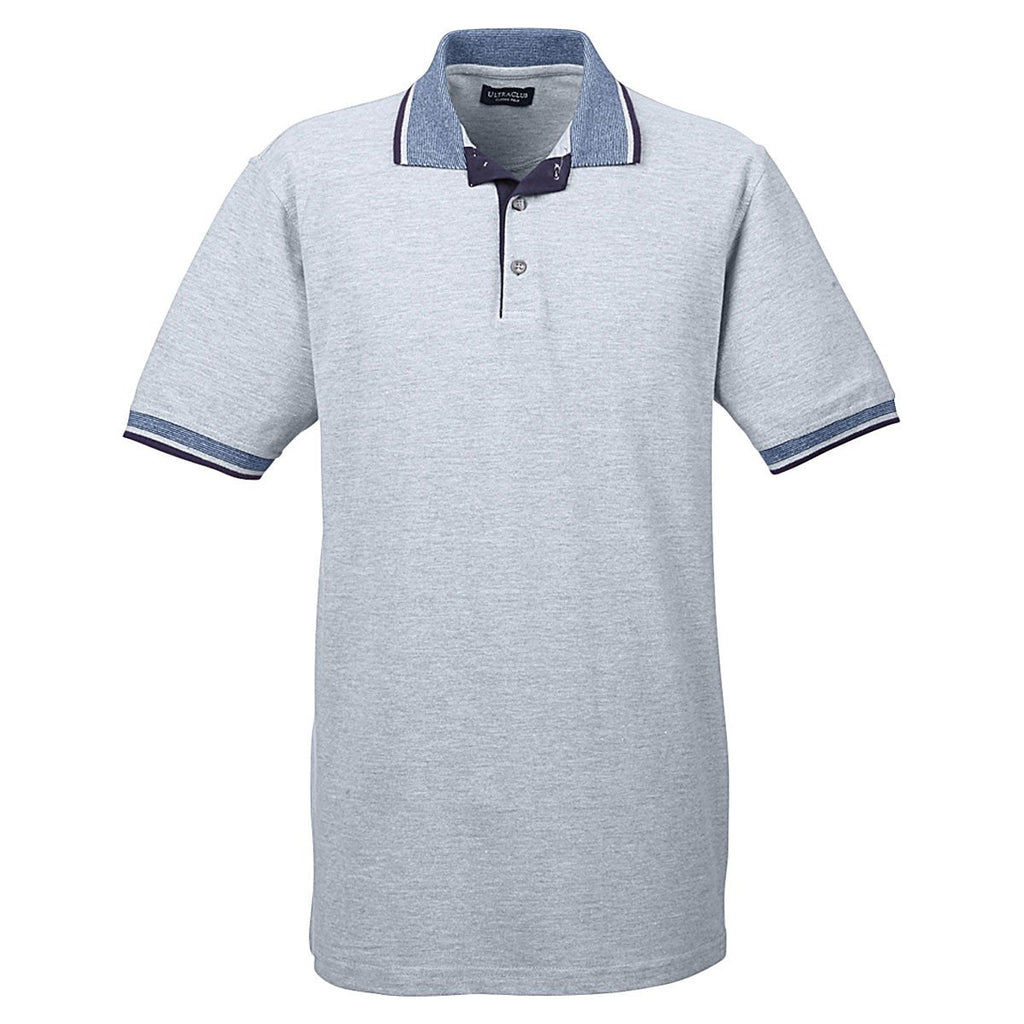 UltraClub Men's Heather/Navy Color-Body Classic Pique Polo with Contrast Multi-Stripe Trim