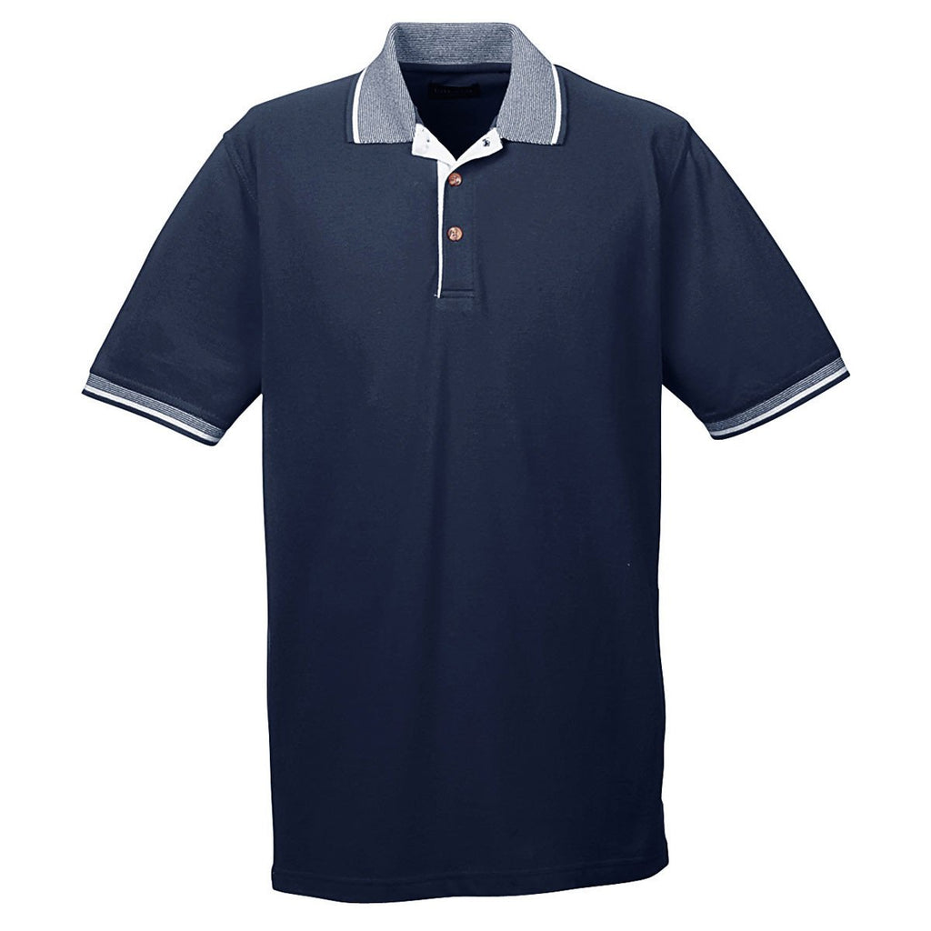 UltraClub Men's Navy/White Color-Body Classic Pique Polo with Contrast Multi-Stripe Trim