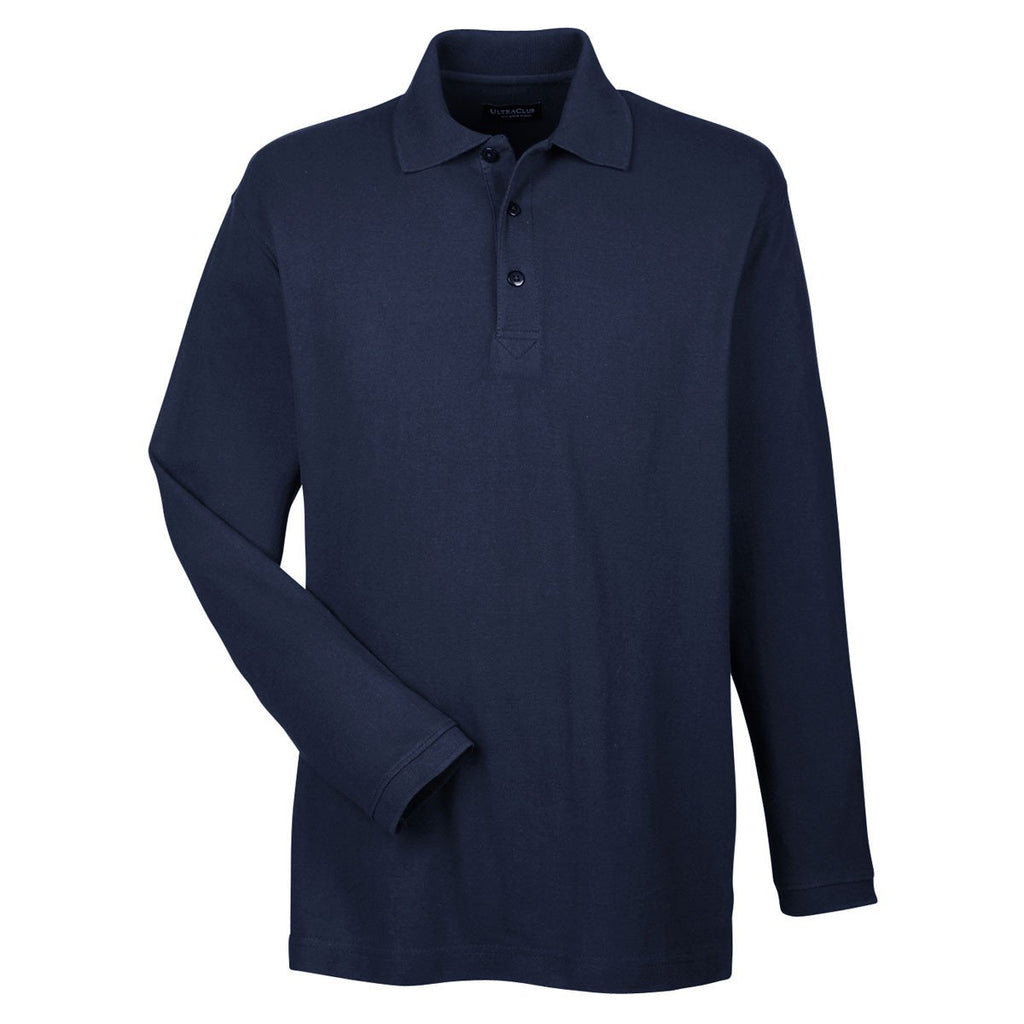 UltraClub Men's Navy Long-Sleeve Whisper Pique Polo