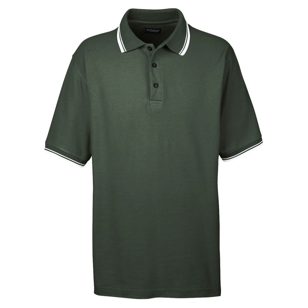 UltraClub Men's Forest Green/White Short-Sleeve Whisper Pique Polo with Tipped Collar and Cuffs