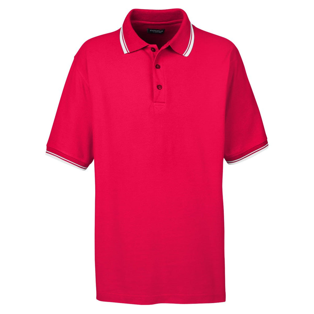 UltraClub Men's Red/White Short-Sleeve Whisper Pique Polo with Tipped Collar and Cuffs