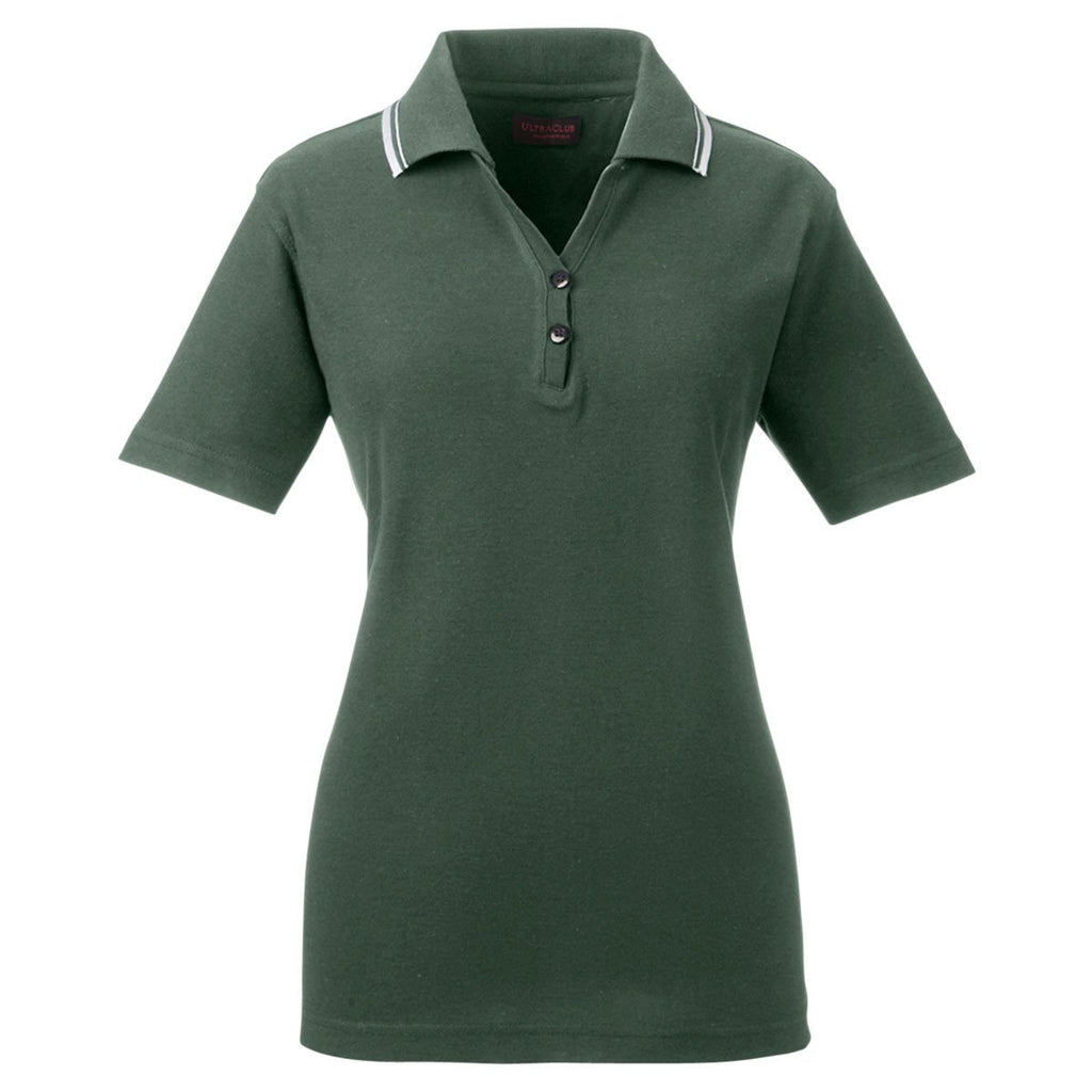 UltraClub Women's Forest Green/White Short-Sleeve Whisper Pique Polo with Tipped Collar
