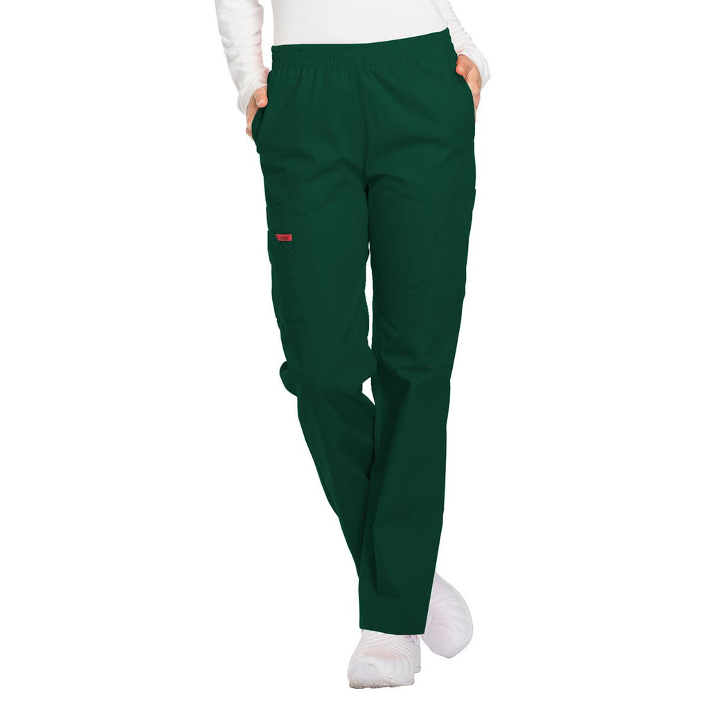 A natural rise design separates the logoed Dickies Women's Hunter EDS Signature Natural Rise Pull-On Pant from similar healthcare apparel. Super smooth brushed cotton feels soft against the skin to deliver hours upon hours of optimal comfort. Rip and tear resistant polyester poplin gives you a go to pair of pants for all occasions. Attach your corporate logo on the large imprint area to present a polished professional image for your business. The pull-on pant feature makes getting in and out of your work clothes a breeze. All around elastic waistband contours your waistline to keep you feeling great throughout the day.Highlights