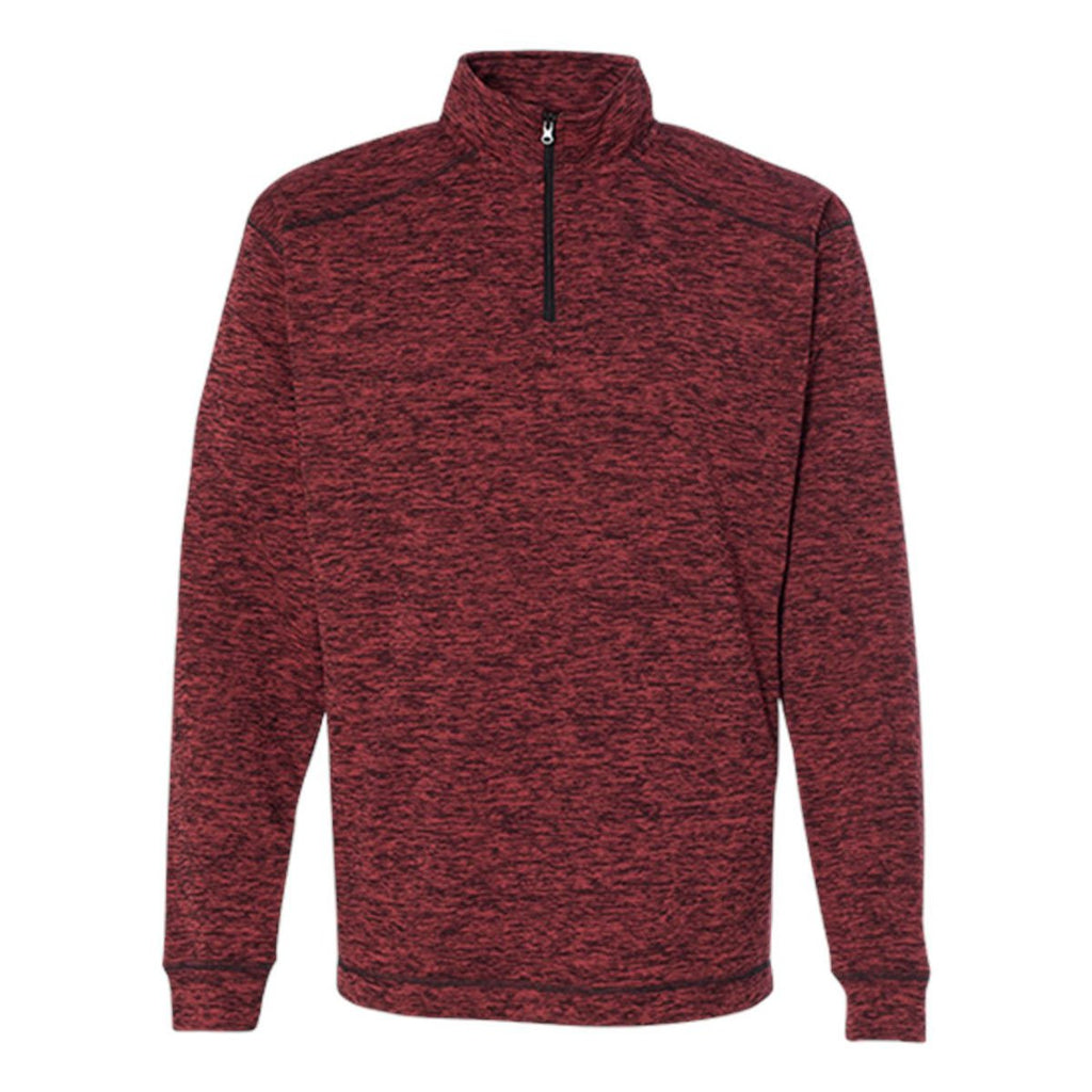 Reach for the fashion sky by wearing the custom logoed J. America Men's Red Fleck Cosmic Fleece Quarter-Zip Pullover Sweatshirt. One-hundred percent spun polyester contains tightly woven yarns to prevent rips and tears from diminishing your appearance at informal corporate events. The self fabric cuffs, collar, and pockets produce a stylish look that will attract the looks of everyone you pass by at crowded airport terminals. With a captive audience nearby, display the company logo you added on the large imprint area. Side and underarm gusset panels make the sweatshirt ideal for active professionals who enjoy camping and hiking.Corresponding Women's Style:J. America Women's Red Fleck/Black Cosmic Fleece Quarter-Zip Pullover