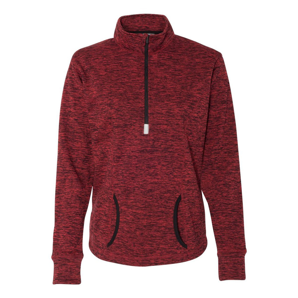 J. America Women's Red Fleck/Black Cosmic Fleece Quarter-Zip Pullover