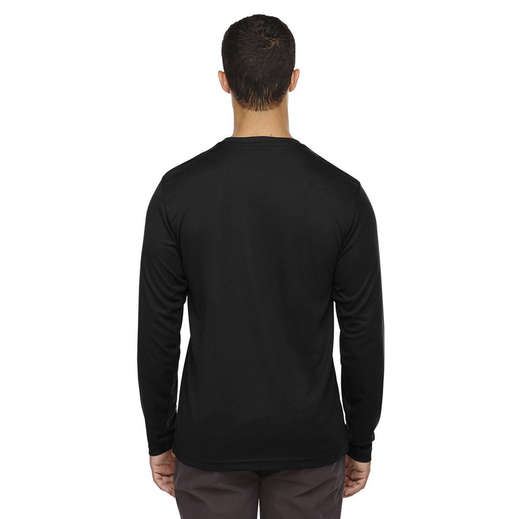 Core 365 Men's Black Agility Performance Long-Sleeve Pique Crewneck