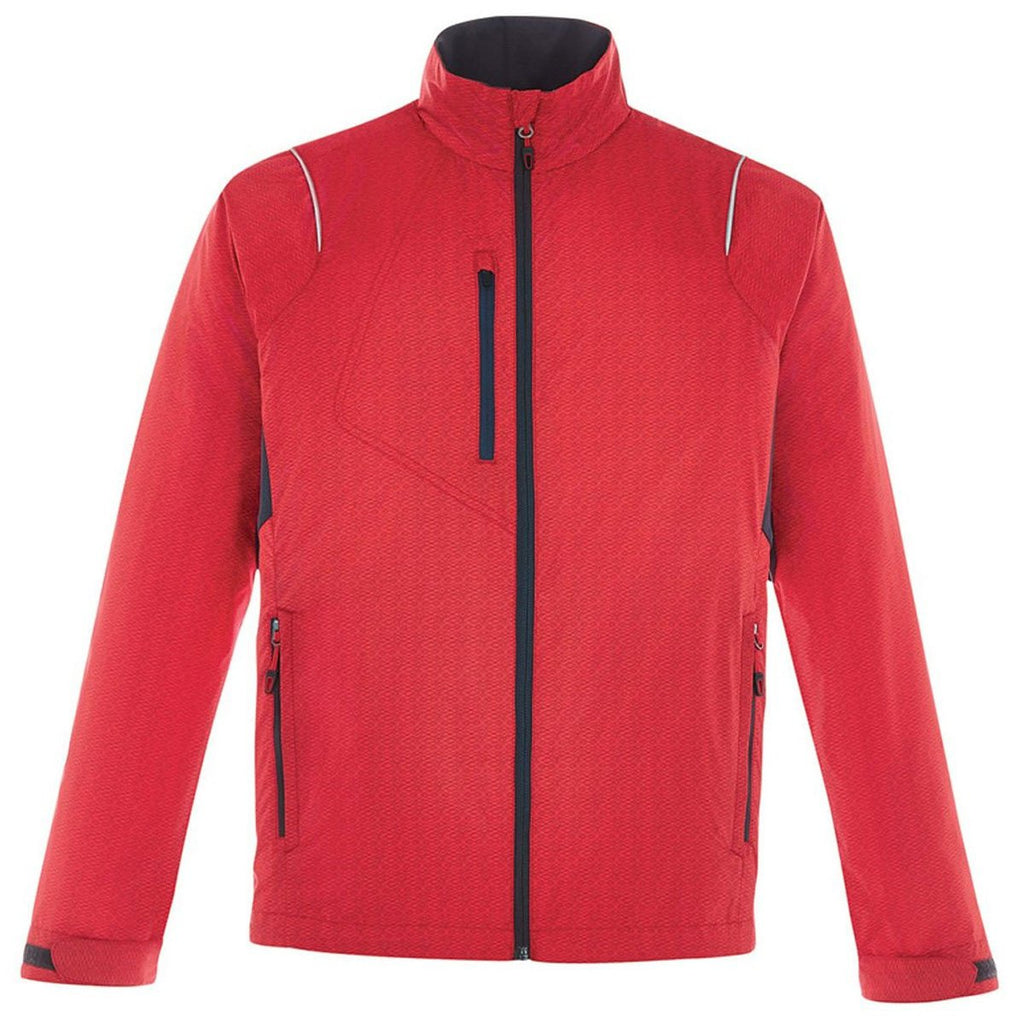 A recycled jacket doesn't mean you wear a jacket put together using a wide variety of recycled parts. The North End Men's Flame Red Sustain Lightweight Dobby Jacket with Print contains 100% recycled polyester mini dobby to ensure long lasting durability. Reflective piping located on the front and back shoulders augMen'st the aesthetic appeal of this jacket, as well as give you an outer garMen'st that alerts drivers of your presence at night. The back vent system quickly expunges perspiration from your body. Partially concealed lower pockets offer the perfect place to store your electronic devices, as well as important business documents.Corresponding Women's Style: North End Women's Flame Red Sustain Lightweight Recycled Polyester Dobby Jacket with Print