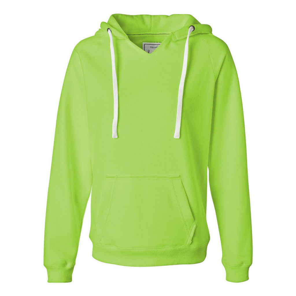 J. America Women's Neon Green Sueded V-Neck Hooded Sweatshirt
