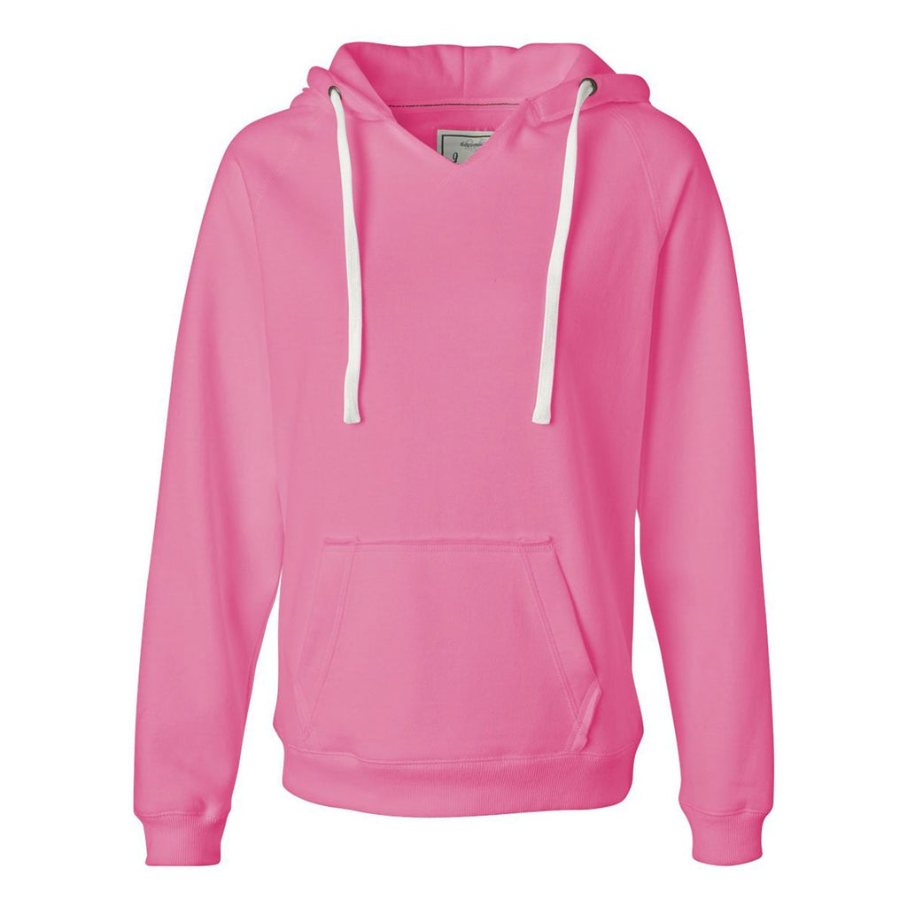 J. America Women's Neon Pink Sueded V-Neck Hooded Sweatshirt