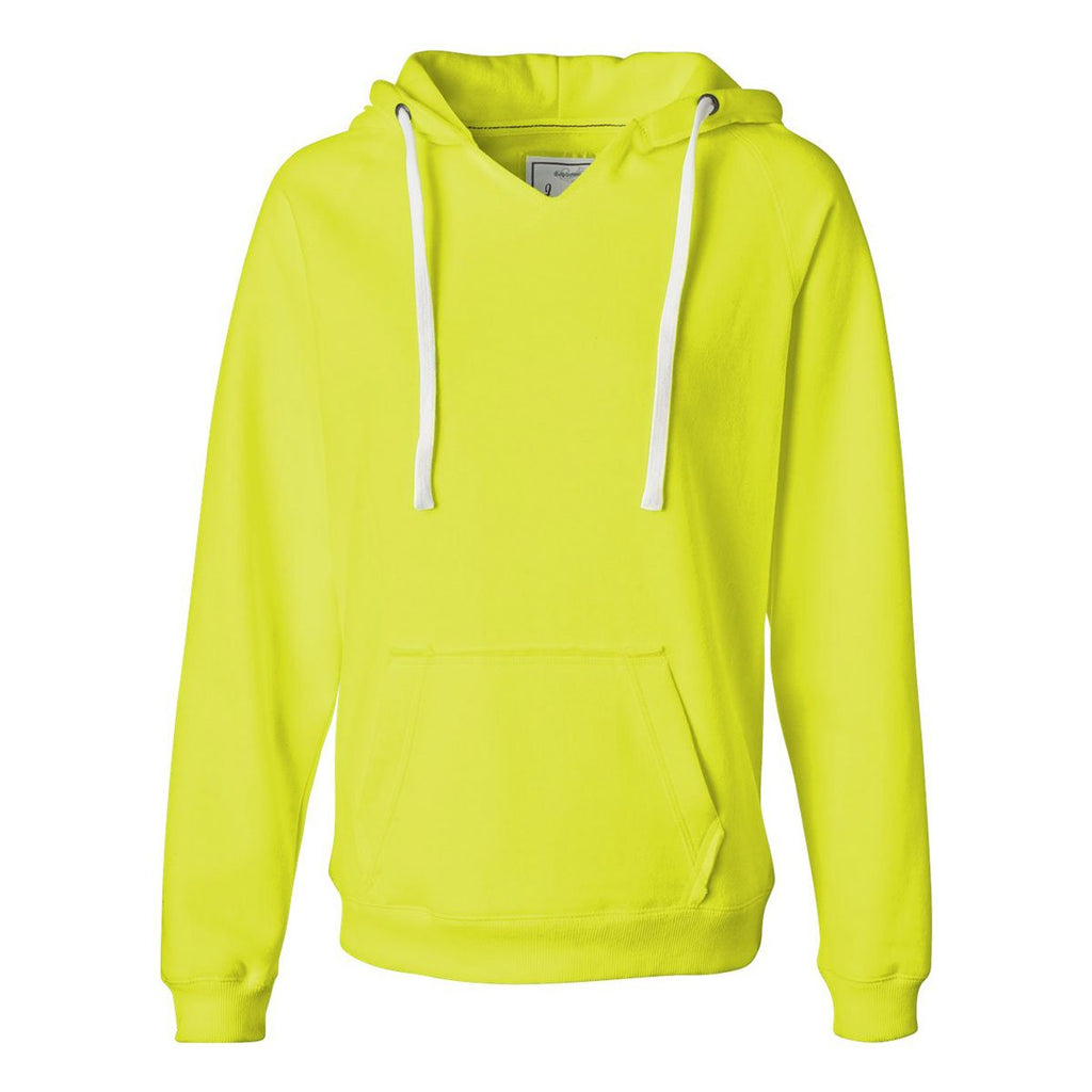 J. America Women's Neon Yellow Sueded V-Neck Hooded Sweatshirt