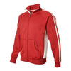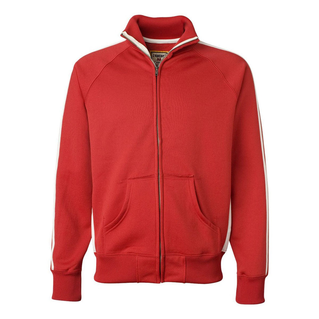 Active professionals looking for comfortable corporate apparel to wear for workouts should order the embroidered J. America Men's Red/White Vintage Track Jacket . The classic design includes contrast color side gussets and sleeve strips, as well as a split front pouch that allows you to organize electronic devices. Blended cotton and polyester offer the dual benefits of supreme comfort and long lasting durability. Raglan sleeves and rib waist cuffs and collar seal the fashion deal. Attach a custom logo on the large imprint area to create a fashion magnet that attracts potential customers to your company.Highlights