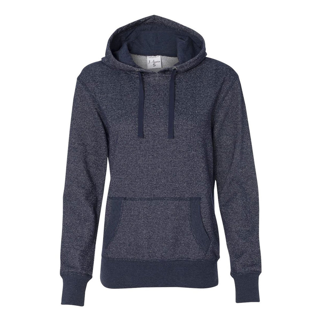 J. America Women's Navy/Silver Glitter French Terry Hooded Pullover
