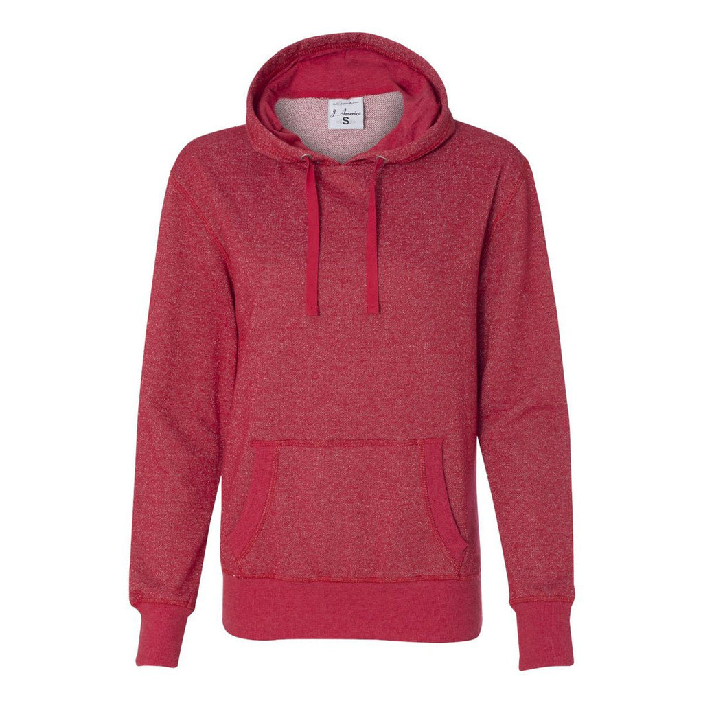 J. America Women's Red/Silver Glitter French Terry Hooded Pullover