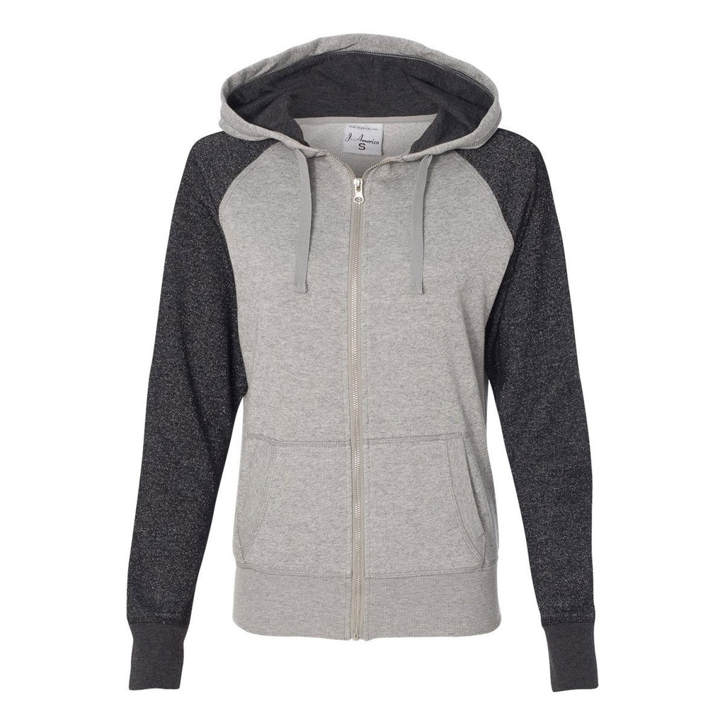 J. America Women's Oxford/Black Glitter French Terry Hooded Full-Zip Sweatshirt